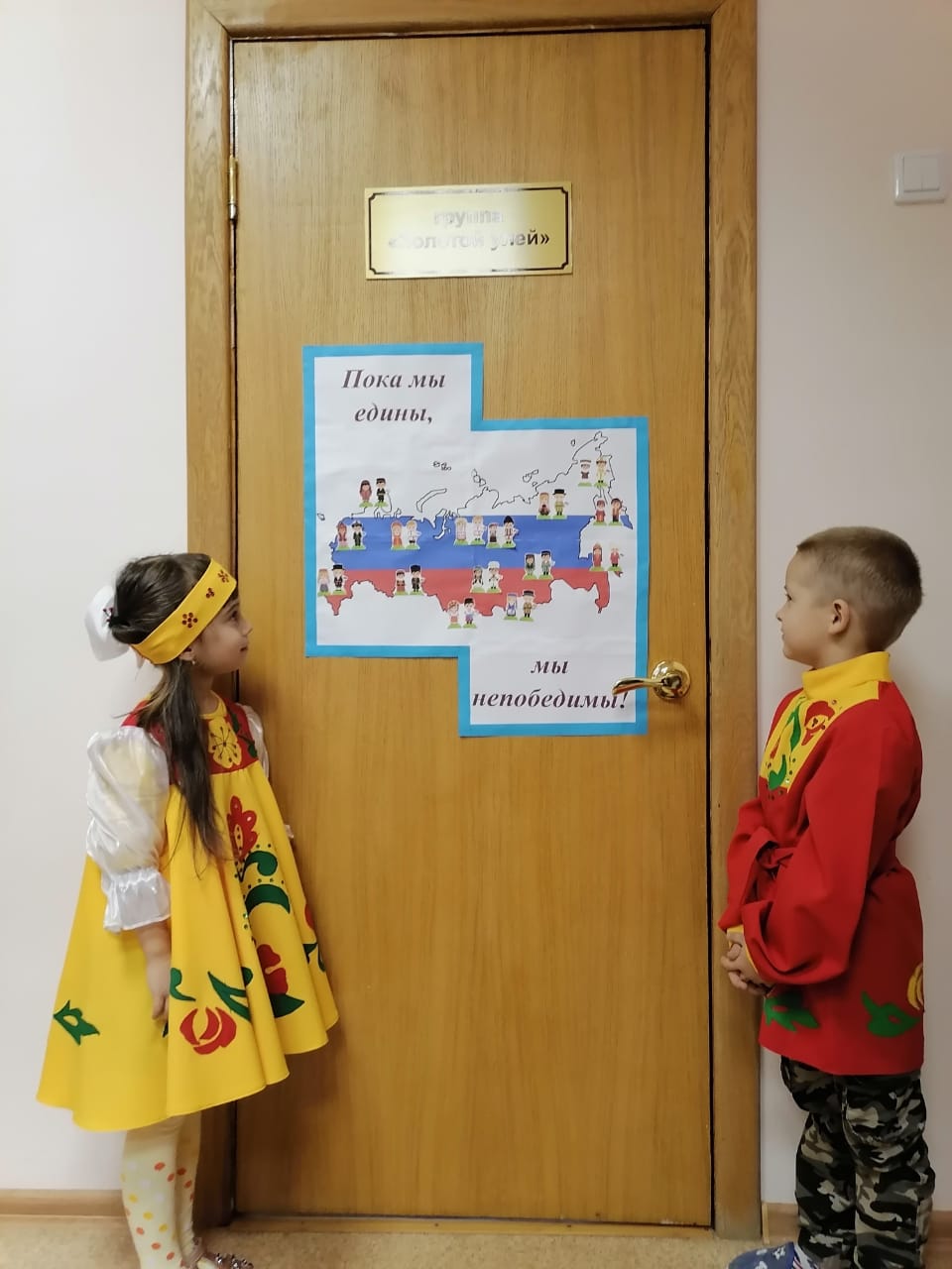 В нашей группе прошел познавательный час посвященный празднику «День народного единства». Дети рассматривали иллюстрации с национальными костюмами народов, проживающих на территории Российской Федерации. Беседовали на тему "Истории возникновения праздника - День народного единства", совместно с воспитателем изготовили стенгазету «День народного единства». А так же ребята своими руками изготовили флаг России в подарок своим родным.